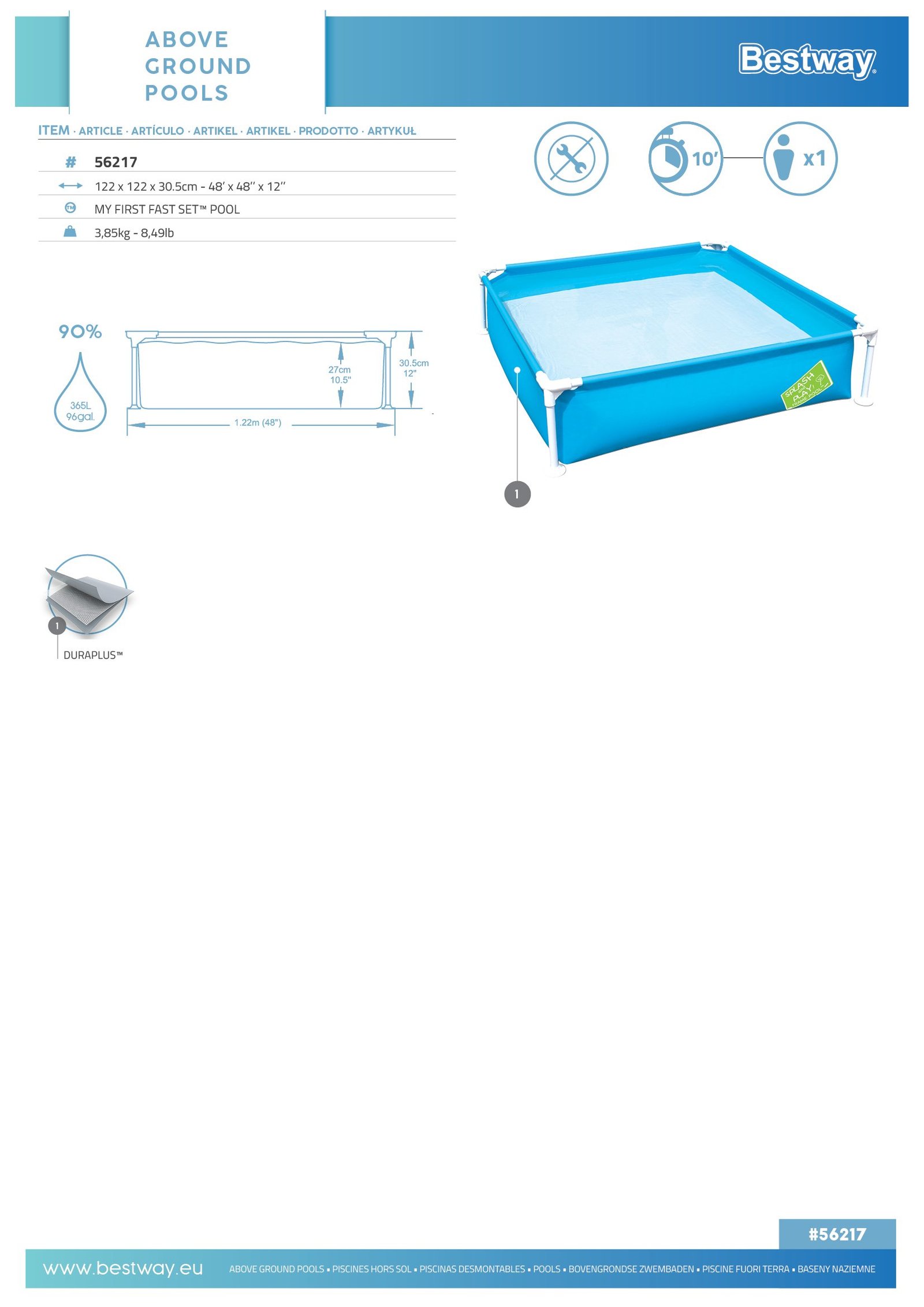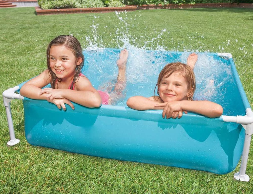 Bestway 56217 | Size 6.4 x 4.9 x 1.00 Ft | Rectangular Metal Frame Portable Ready-Made Swimming Pool