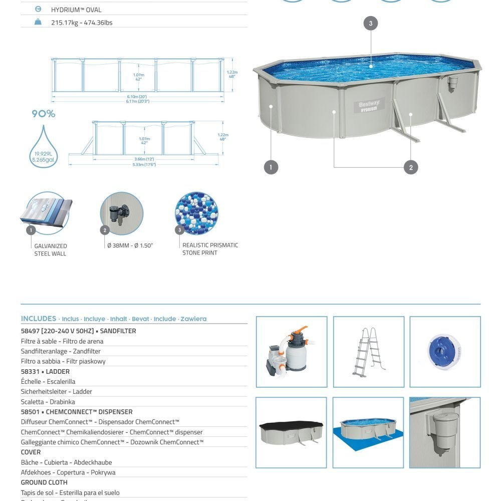 Bestway 56369 | Size 20.11 x 11.8 x 4.00 Ft | Hydrium Steel Oval Metal Frame Portable Ready-Made Swimming Pool
