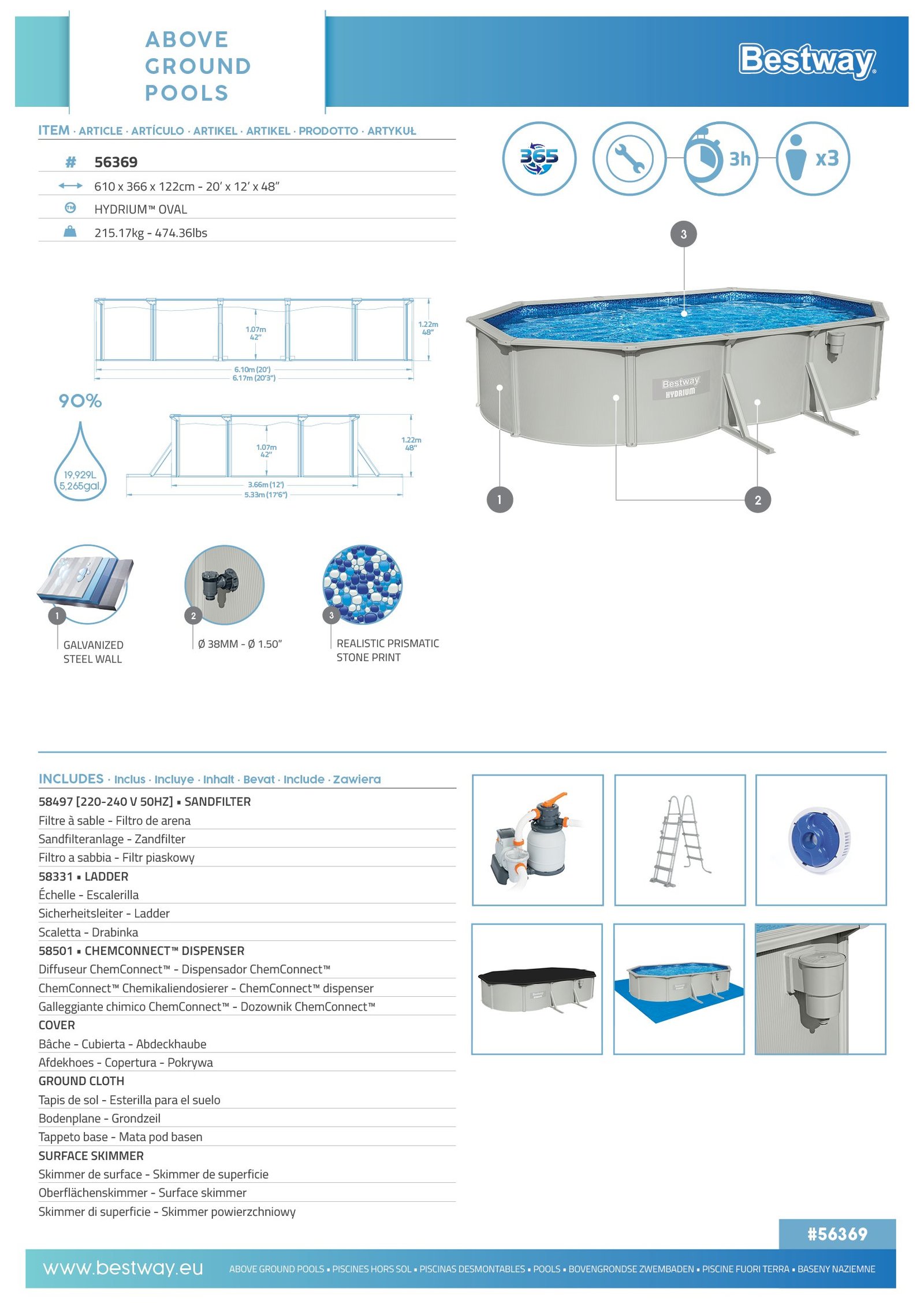 ✔Add-Ons : Chem Connect Dispenser, Cover, Filteration, Ladder