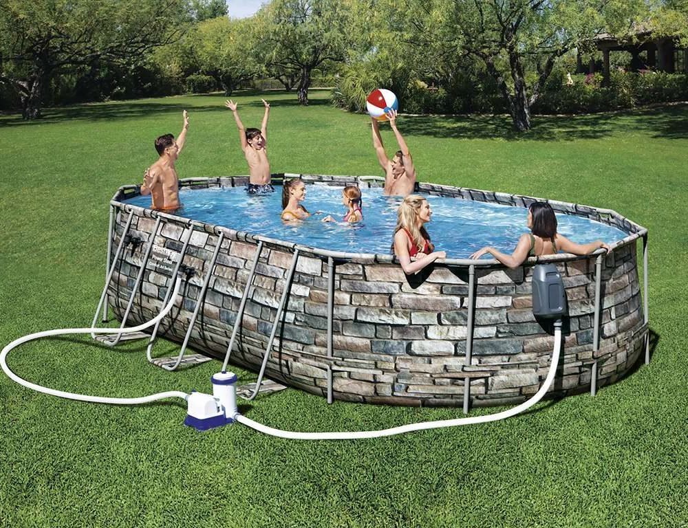 Bestway 56719 | Size 20.0 x 12.0 x 4.00 Ft | Power Steel Oval Metal Frame Portable Ready-Made Swimming Pool
