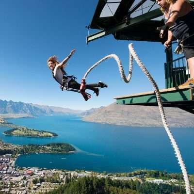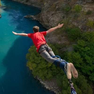 Bungee jumping is an adventure sport that involves jumping from a tall structure, such as a bridge or a platform, while attached to a long elastic cord. The jumper typically wears a full body harness, which is connected to the bungee cord, and jumps off the platform or bridge, free-falling until the cord reaches its maximum stretch and begins to pull the jumper back up. Bungee jumping is a high-adrenaline activity that requires courage, physical fitness, and mental preparation. It is typically done as a recreational activity, although it can also be used for stunts, film-making, and other professional purposes. Bungee jumping is known for its thrilling sensation of weightlessness and free-fall, as well as the scenic views from the jumping location. It is considered a high-risk activity and should only be undertaken with proper training, equipment, and safety precautions in place.