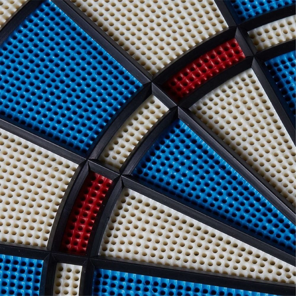 The is built to last with its durable, concave-holed segments designed to withstand years’ worth of impact. A large catch ring surrounds the target face, creating a 360 degree landing zone for any missed shots, protecting your walls from damage. The board’s ultra-thin spider allows for tighter shot groupings and a larger surface area, increasing the ratio of landed shots and greatly reducing bounce-outs.