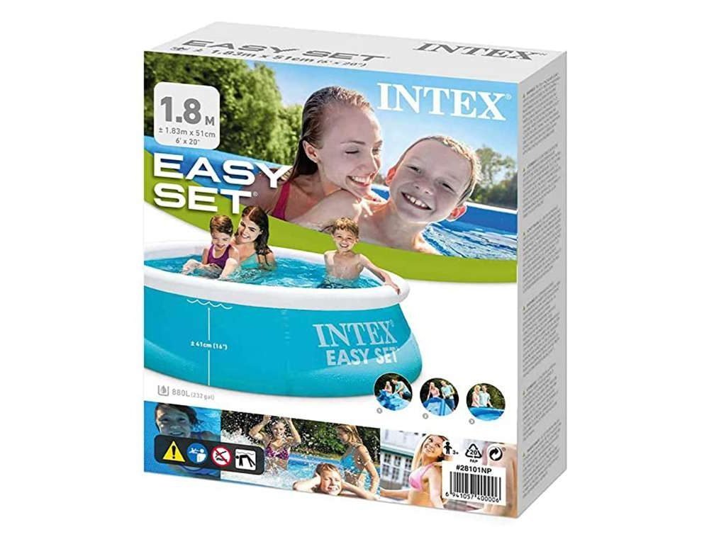 Intex 28101 | Size 6.4 x 6.11 x 2.00 Ft | Easy Set Round Inflatable Portable Above Ground Swimming Pool