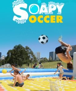 Soapy Football is an exciting sport designed for people of all ages with zero experience about soccer. It was invented in Brazil where people are crazy about soccer and to spice things up a little they started Soap Soccer. It is an attraction for hilarious tournaments and animation. Courage, curiosity, longing to have a go, water and a little soap are the stimuli to activate teams of “sports enthusiasts” and crowds of people.The Soapy Football Pitch is Made of multi coloured polyester and defined by an inflatable edge, which makes it practically impossible for injuries and as it even, has a soft-bedded floor.